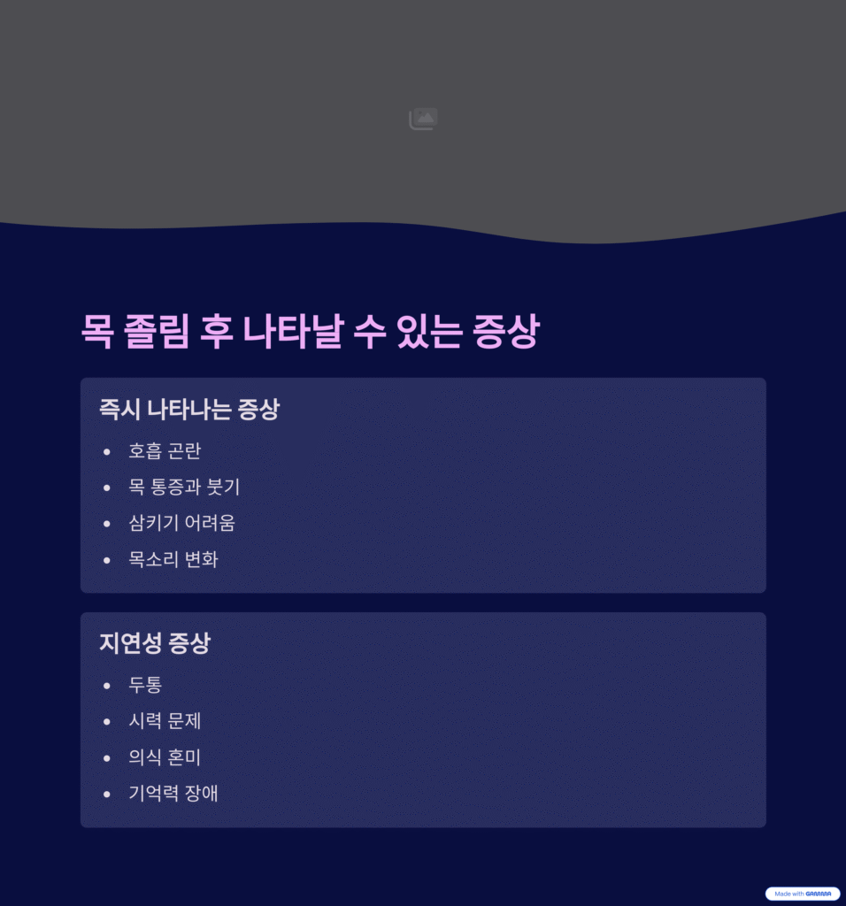 목이 졸리는 순간은 정말 짧지만, 그 후유증은 생각보다 심각할 수 있어요.